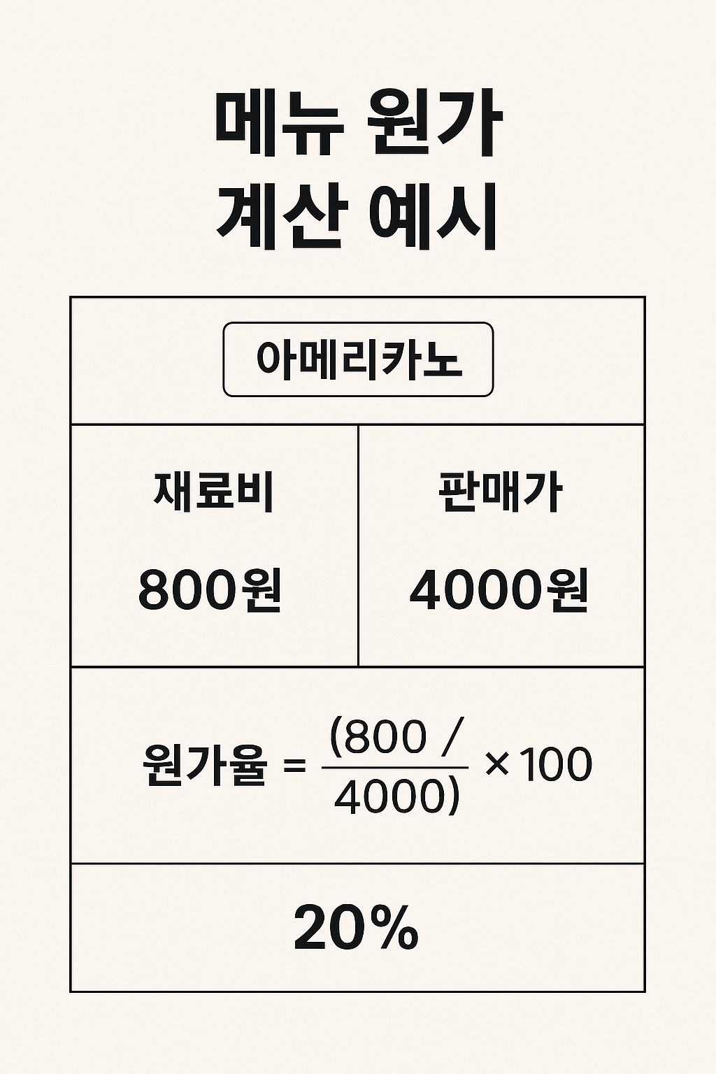 메뉴 원가율 = (재료비 / 판매가) × 100